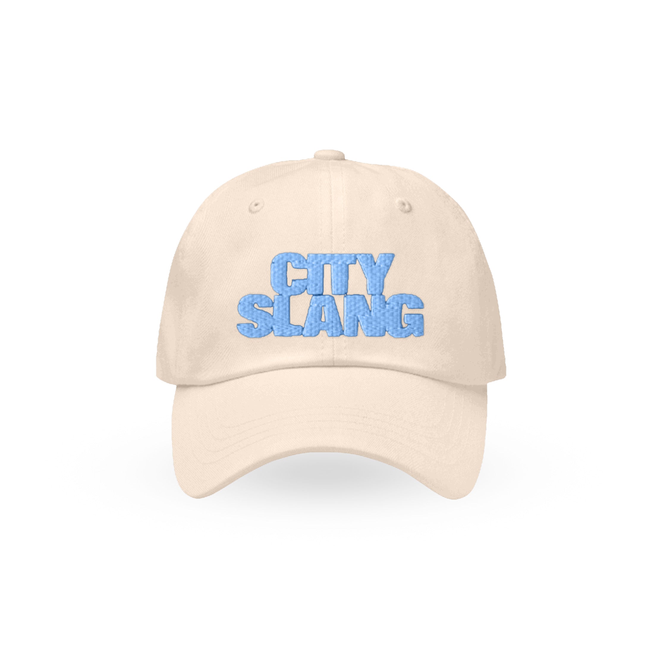 Dad cap with embroidered City Slang 'sleeve-text' logo